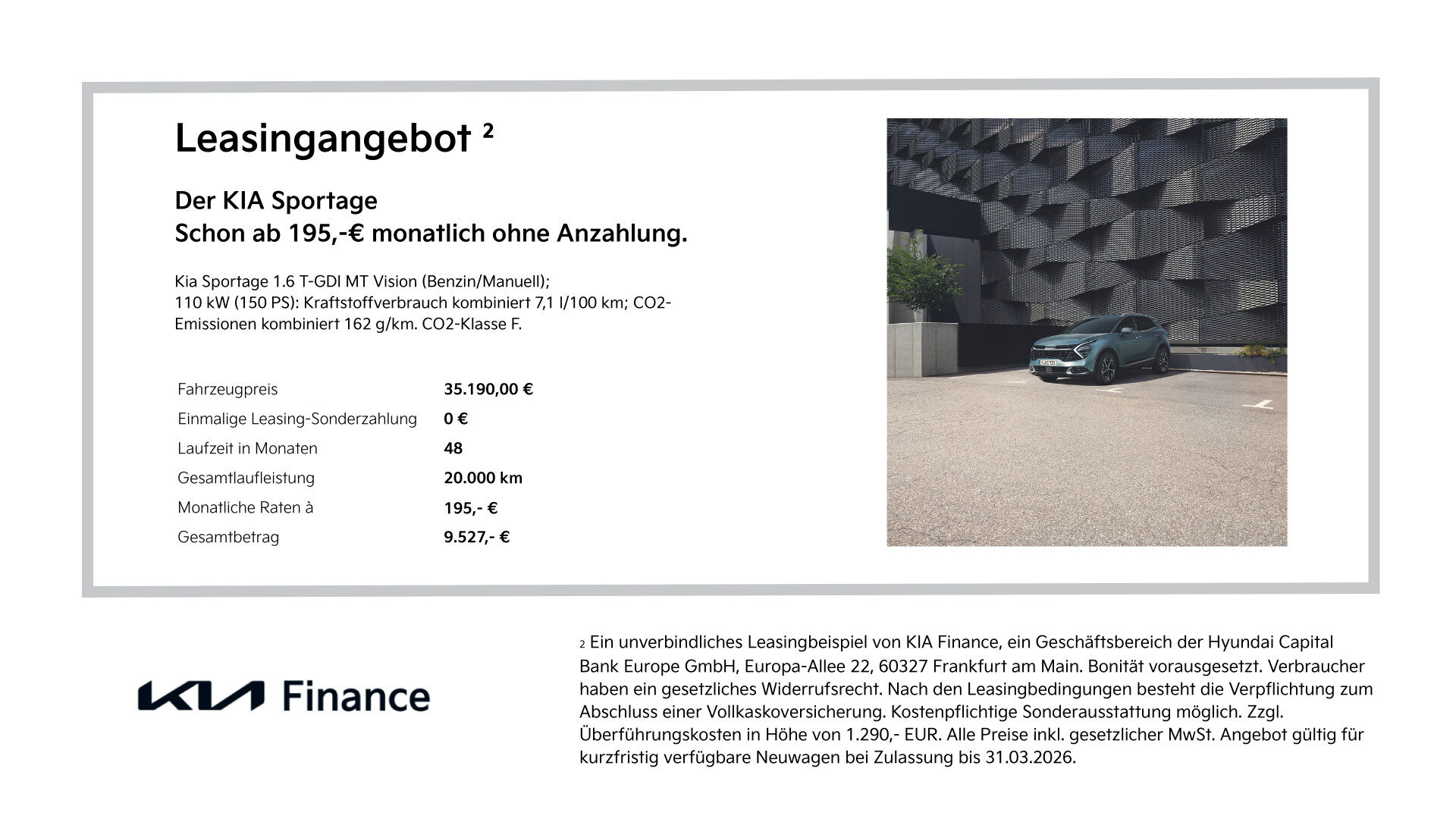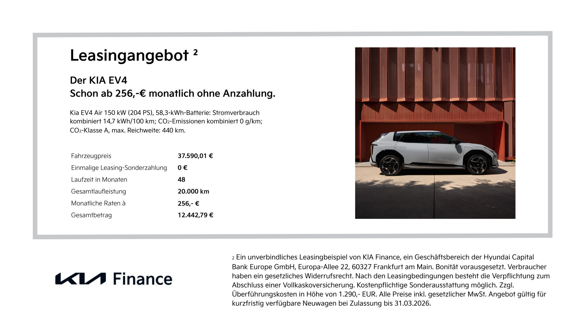 Erlebe jetzt die Kia Starter Deals bis 31.3.2026 und entdecke dein Lieblingsmodell zu besonders attraktiven Leasingkonditionen ohne Anzahlung. Entdecke den Kia EV4, den Kia Sportage oder den Kia XCeed und lass dich inspirieren von modernem Design, innovativer Technik und einem Fahrerlebnis, das Freude macht. Vereinbare am besten direkt einen Termin zur Probefahrt und lass dich begeistern.